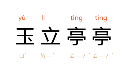 玉立:比喻身长而美丽;亭亭:高耸直立的样子。形容女子身材细长。也形容花木等形体挺拔。