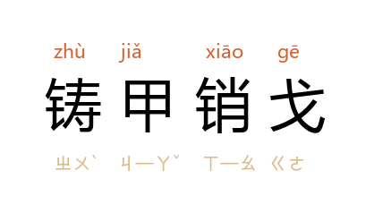 出处明·刘基《丙申岁十月还乡作》诗之七:“修文偃武君王意,铸甲销戈会有期。”