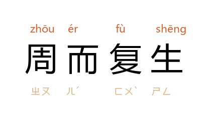 周:环绕一周;复:又。转了一圈又一圈,不断循环。