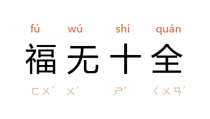 全:完备,齐全。有福的事不可能十全十美没有缺陷。