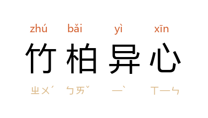 出处《楚辞 东方朔〈七谏 初放〉》:“孰知其不合兮,若竹柏之异心。”王逸注:“竹心空,屈原自喻志通达也;柏心实,以喻君暗塞也。言己性达道德,而君闭塞,其志不合,若竹柏之异心也。”
