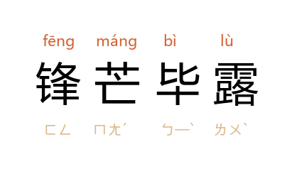 锋:刀锋;芒:原指谷类种子壳上的细刺;比喻枪头;矛尖;毕:都;完全;全部。刀锋和矛尖都露出来。形容人傲气逼人;逞强好胜。或形容人锐气才干完全显露出来。