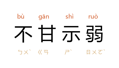 甘:甘心;情愿;示:表示;显示;弱:差;不足。不甘心表示自己比别人差。