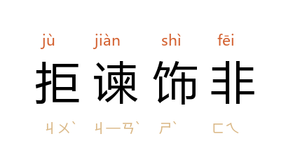 谏:劝告;饰:遮掩;遮盖;非:错误。拒绝别人的规劝;掩饰自己的错误。