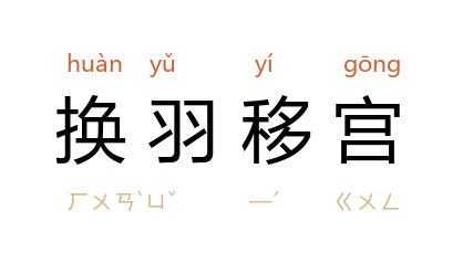 见“移宫换羽”。亦作“移商换羽”。谓乐曲换调。宫、商、羽均为古代乐曲五音中之音调名。后也比喻事情的内容有所变更。