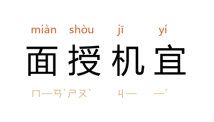 面:当面;授:教;传授;机宜:适应时机的对策、办法。当面教给应采取的机密的对策或措施。