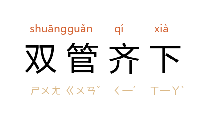 管:笔;齐:同时。双手执笔同时作画。比喻为达到某个目的同时采取两种措施或同时做两件事情。