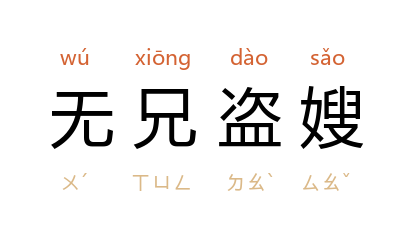 语本《汉书·直不疑传》:“人或毁不疑曰:‘不疑状貌甚美,然特毋柰其善盗嫂何!’不疑闻,曰:‘我乃无兄。’然终不自明。”后以“无兄盗嫂”指无中生有的毁谤。三国魏曹操《劐整齐风俗令》:“昔直不疑无兄,世人谓之盗嫂……此皆以白为黑,欺天罔上者也。”