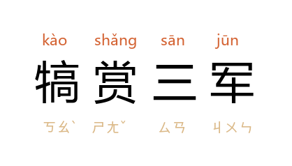 犒:以财物或食物慰劳、鼓励。三军:春秋时称中军、左军、右宫为三军;后统称军队。现指陆、海、空三军。指奖赏、慰劳军队将士。