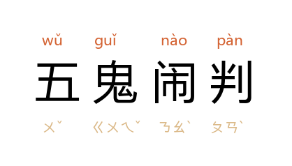 出处鲁迅《小说旧闻钞·三保太监西洋记》:“惟其中有五鬼闹判一语,不知所出;以问余,亦无以应也。”