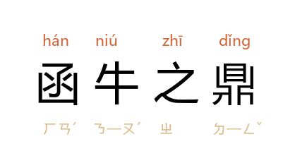 函:包含,包容。能容纳一头牛的大鼎。形容气势宏大。