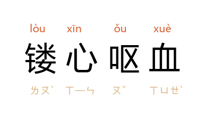 出处明·杨慎《升庵诗话·假诗》:“如许浑辈,皆空吟不学,平生镂心呕血,不过五七言短律而已。”