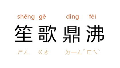 例子元·高明《琵琶记·新进士宴杏园》:“黄旗影里,笙歌鼎沸。”