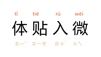 体贴入微:体贴,细心体谅别人的心情和处境,给予关心和照顾;入微,达到细微的程度。形容对人照顾或关怀非常细心、周到。