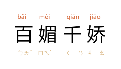 出处南朝 陈 徐陵《杂曲》诗:“绿黛红颜两相发,千娇百态情无歇。”唐 张文成《游仙窟》:“千娇百媚,造次无可比方;弱体轻身,谈之不能备尽。”