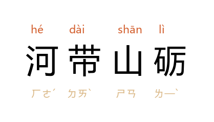 河:黄河;带:衣带;山:泰山;砺:磨刀石。黄河像条衣带,泰山像块磨刀石。比喻经历的时间久远。