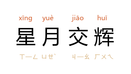 星月交辉:星星和月亮交相照耀。指星星和月亮一起照耀,格外明亮。亦作“星月皎洁”。
