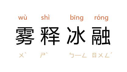 雾气消散冰块融化。比喻疑难消除尽净。