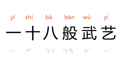 出处元 白朴《梧桐雨》楔子:“臣左右开弓,一十八般武艺,无有不会。”