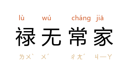 出处晋·挚虞《门铭》:“禄无常家,福无定门,人谋鬼谋,道在则尊。”