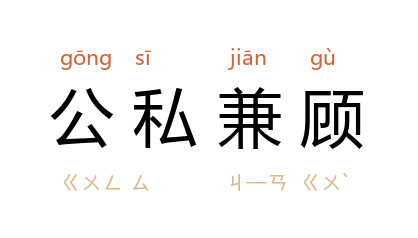 用法主谓式;作补语;指既照顾到公家的利益,也照顾到私人的利益。