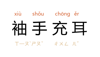 袖手:藏手于袖中;充耳:塞住耳朵。指不闻不问,漠然置之。