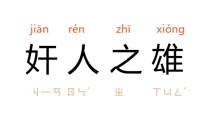 奸人:奸恶诈伪的人;雄:指杰出人士。奸恶诈伪之人的魁首。多指权诈欺世的野心家。