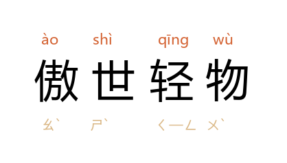 傲世:傲视当世;轻:轻视;物:他人或环境。鄙弃世俗,看不起别人。指孤高自傲,处世不与一般流俗苟同。