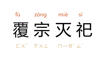 宗:祖庙。祀:祭祀。覆宗:推翻祖庙。灭祀:灭了香火,引申为绝了后代。毁坏宗庙,断绝后代。亦作“覆宗绝嗣”。