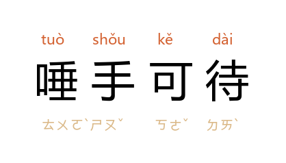 唾手:往手上吐唾沫。比喻很快就可以得到或成功