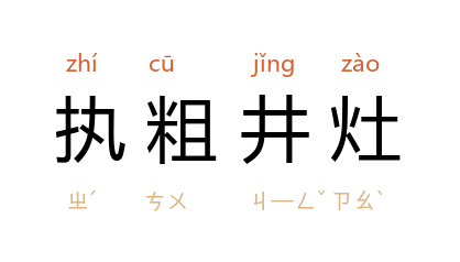 出处唐·段成式《酉阳杂俎续集·支诺皋中》:“女笑曰:‘身既无托,愿执粗井灶。’王申即日赁衣贳礼为新妇。”
