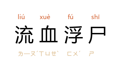 浮:漂浮。流的血将尸体都漂了起来。形容死伤很多。