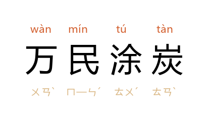 涂:泥淖;炭:炭火。万民如同陷入泥淖坠入火海一般。形容广大百姓陷入极端困苦的境地。