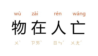 人死了,东西还在。指因看见遗物而引起对死者的怀念,或因此而引起的感慨。