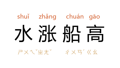 指水位上升;船身也就随着提高。比喻事物随着它所凭借的基础的提高而增长提高。