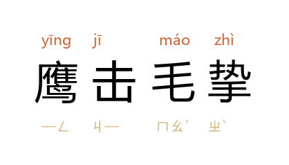 击:搏击;挚:凶猛。鸷鸟扑击其他动物时,羽毛都张着。比喻严酷凶悍。