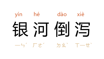 泻:水从高处往下直流。象银河里的水倒泻下来。形容雨下得极大,象泻下来的一样。