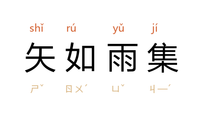 出处清·林云铭《林四娘记》:“持弓回射,矢如雨集,俱向众兵头而掠过。”