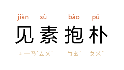 出处《老子》曰:“见素抱朴”。老子《道德经》新解:“见:现,呈现,推出。素:没有染色的生丝。这里比喻品质纯洁、高尚的圣人。朴:没有加工的原木。这里比喻合乎自然法则的社会法律。”。“见素抱朴、绝学无忧、少私寡欲”是老子提出的治国的三项具体措施。