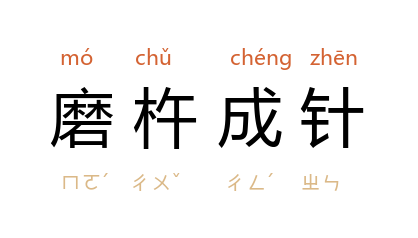 "磨杵成针"比喻做事有恒心有毅力,再大的困难也能克服。