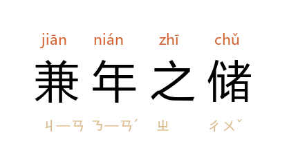 兼年:指两年以上;储:积蓄。有两年以上的储备粮食