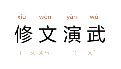 出处清·钱彩《说岳全传》第15回:“终日修文演武,讲论兵机战法。”