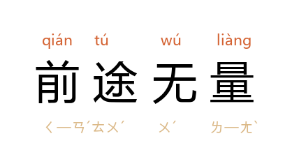 出处钱钟书《围城》:“鸿渐还低头不响——‘我只希望方先生前途无量。’”