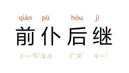仆:倒下;继:跟上。前面的人倒下了;后面的紧跟上去。形容斗争的英勇壮烈。