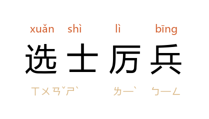 士:军士;厉:磨;兵:武器。挑选士兵,磨利武器。指做好战前准备。