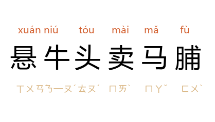 脯:干肉。挂的是牛头,卖的是马肉干。比喻以次充好,以假乱真,名不副实。