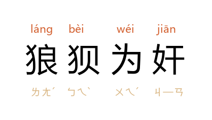 狼狈:传说狈是与狼同类的野兽;因前腿短;要趴在狼身上才能行动。狼和狈常一起出外伤害牲畜。奸:做坏事。比喻坏人互相勾结一起干坏事。