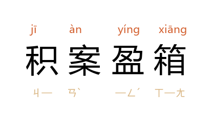 案:桌;盈:满。堆满书桌,塞满书箱。形容书籍、文稿、卷宗等非常多。