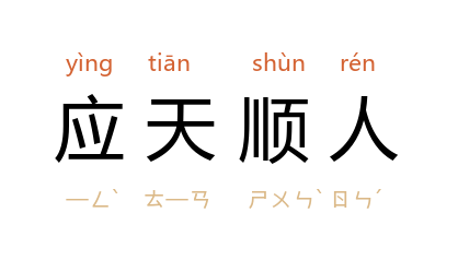 出处《周易 革》:“汤武革命,顺乎在而应乎人。”
