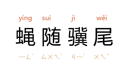 苍蝇附随在骐骥的尾巴上,便可腾飞千里。比喻依附于贤能或有名望者,必能得益。